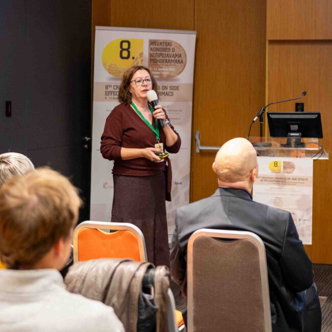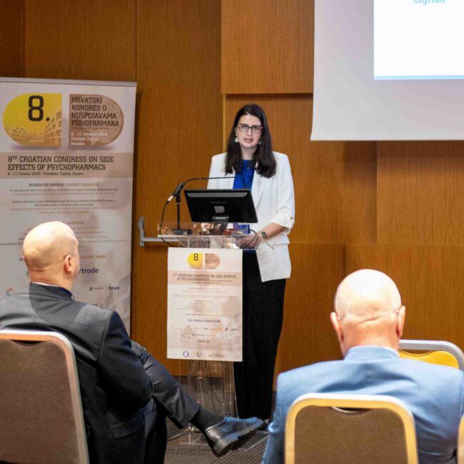 Program je zaključen prikazom nalaza o nuspojavama antipsihotika u nacionalnoj bazi koji su predstavili mr. pharm. univ. spec. pharm. Morana Pavičić, mag. biotech. in med. Barbara Kovačić Bytyqi i prof. dr. sc. Siniša Tomić (ravnatelj HALMED-a).