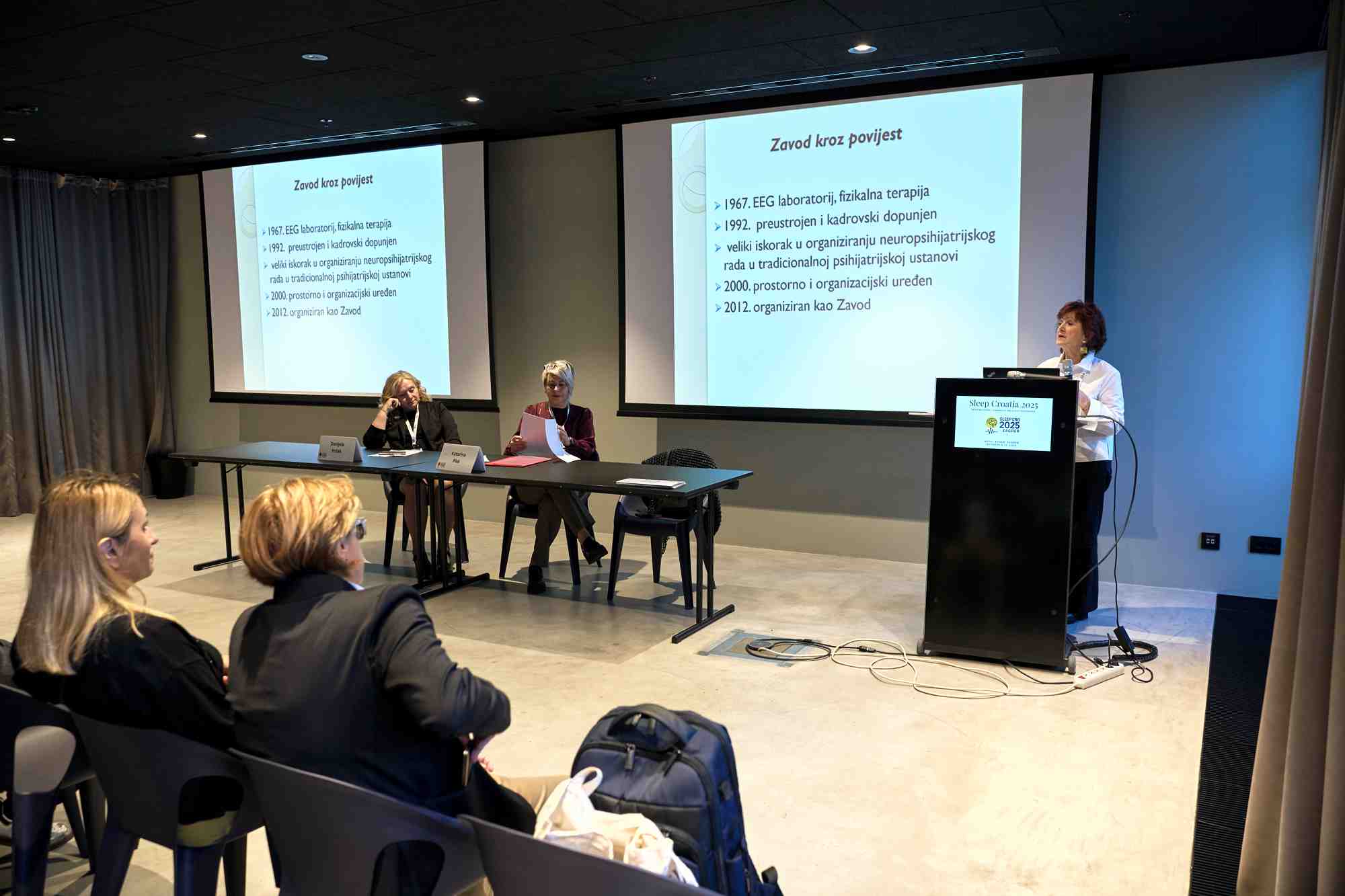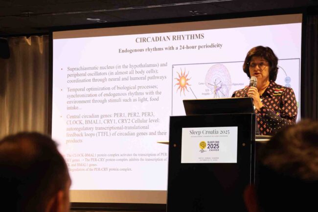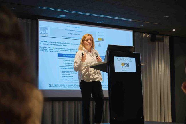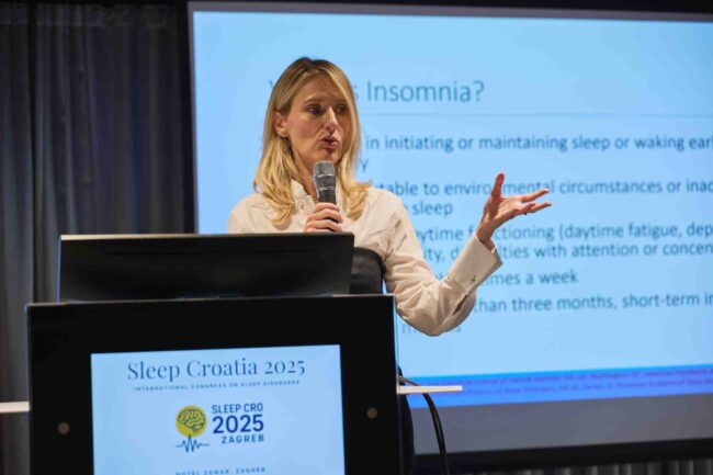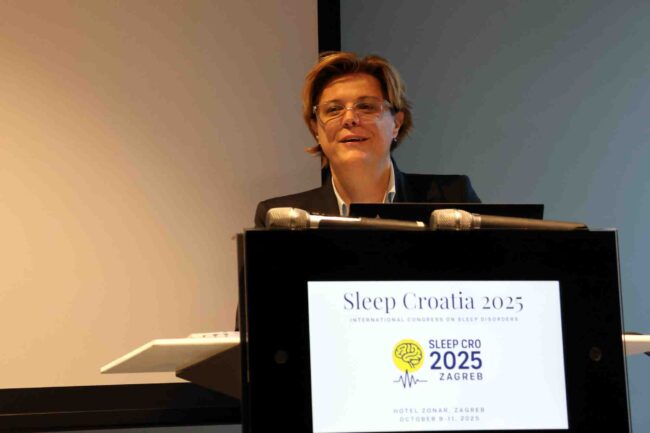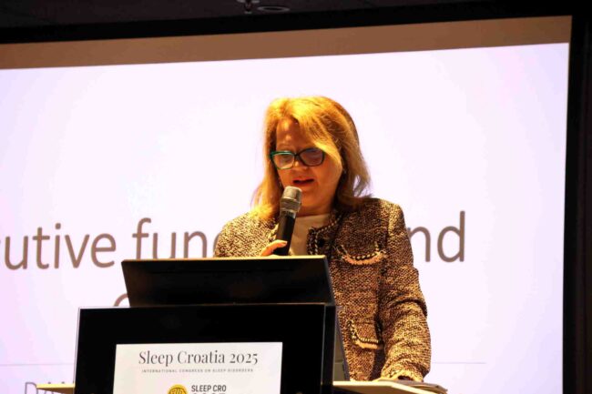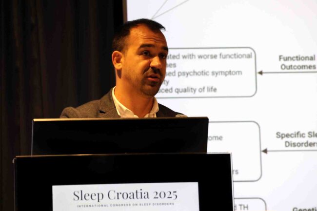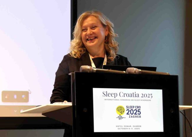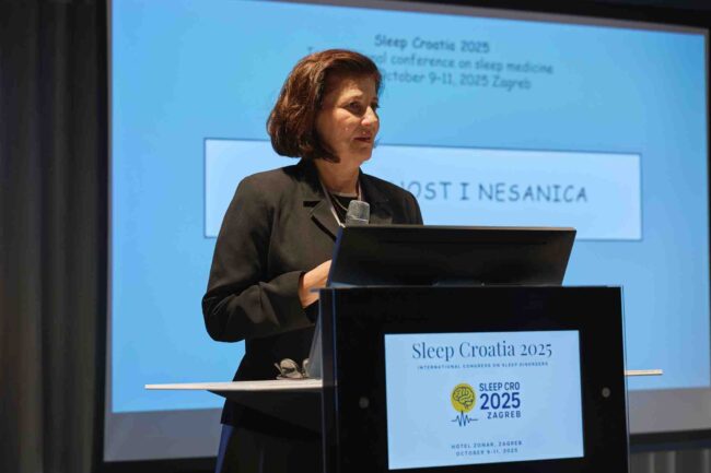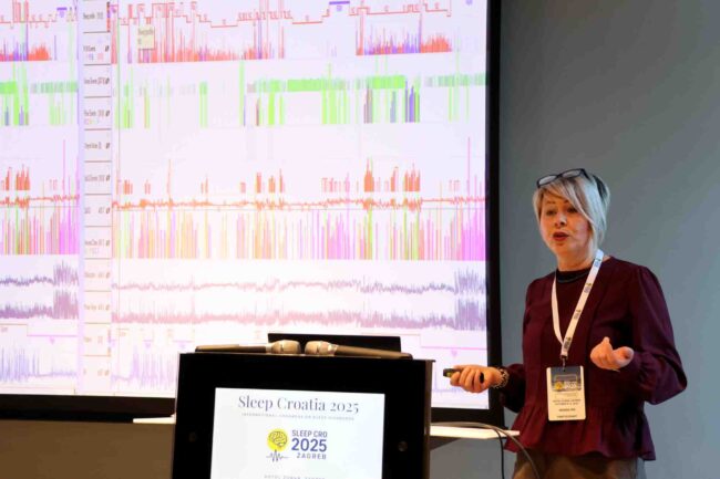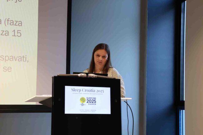 Poveznica spavanja i mentalnog zdravlja provlačila se kroz više izlaganja: prof. prim. dr. sc. Petrana Brečić istaknula je kako nesanica kod osoba sa suicidalnim rizikom može biti “kap koja prelije čašu” i naglasila potrebu ranog prepoznavanja i strukturirane skrbi, dok je dr. sc. Marina Mioč, neurologinja, analizirala nesanicu iz neurološke perspektive s praktičnim implikacijama za svakodnevnu praksu. Doc.dr.sc. Stjepan Jurić, neurolog i epileptolog, razložio je diferencijalnu dijagnozu narkolepsije. Dodatno su istaknuti digitalizirani KBT i AI-podrška, povezanost poremećaja spavanja i depresije te uloga telemedicine (kućni PSG/PG, tele-monitoring PAP/NIV, digitalni KBT-I).