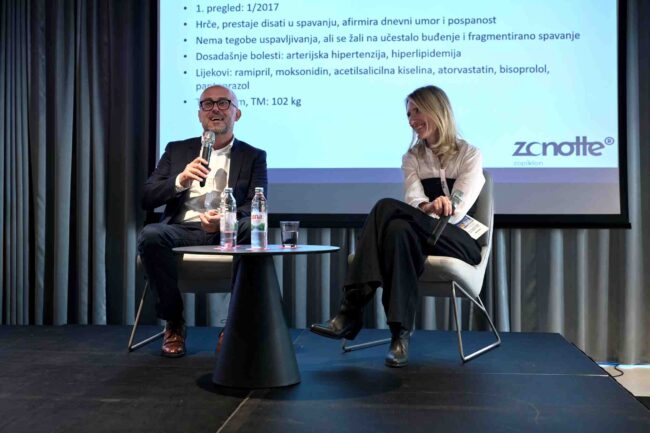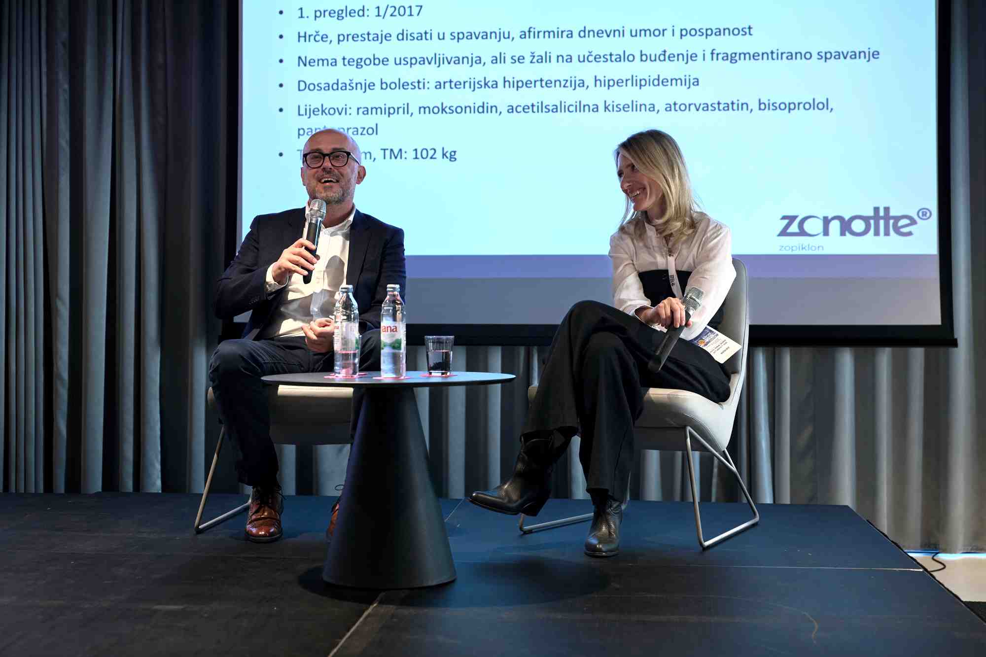 Panel „1001 lice nesanice“ uz doc. dr. sc. Domagoja Vidovića i dr. sc. Marinu Mioč kroz interaktivne slučajeve i pitanja publike naglasio je racionalnu farmakoterapiju i integraciju nefarmakoloških alata (KBT-I, edukacija, higijena spavanja) te važnost preciznog razlikovanja podtipova i komorbiditeta.