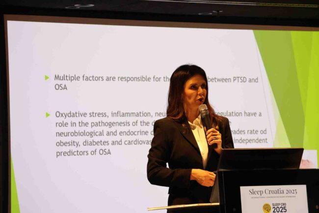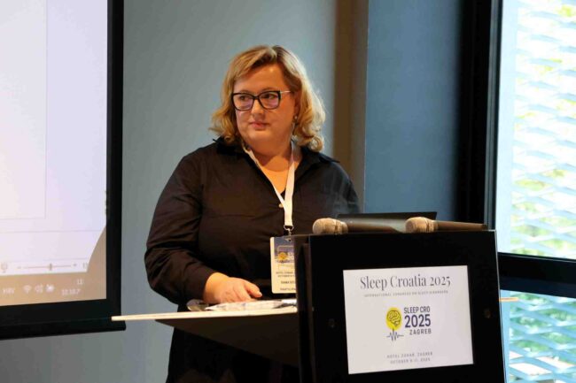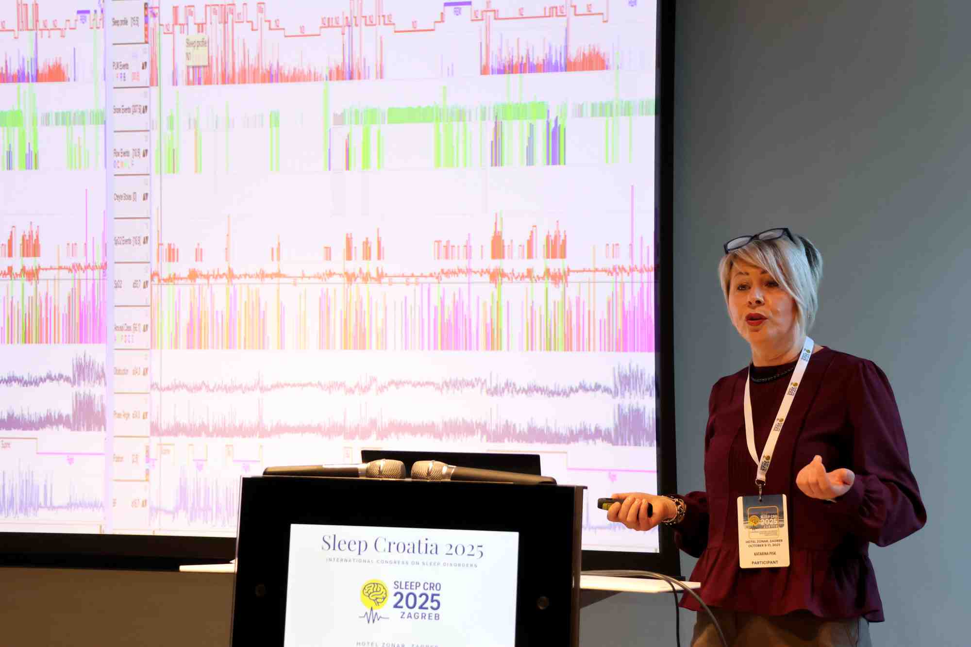 Zadnji dan ovog jedinstvenog kongresa, program je otvoren “širim pogledom” na apneju u spavanju, uključivši teme centralne apneje i cerebrovaskularnog rizika u OSA-i, uključujući kognitivne i izvršne funkcije. Dr. Irena Šarc (Slovenija) prikazala je PAP-terapiju kod sindroma hipoventilacije uzrokovanog pretilošću (OHS), s naglaskom na hemodinamske učinke i odabir bolesnika. Dr. Kristina Ziherl (Slovenija), pulmologinja i somnologinja, predstavila je nove parametre za procjenu težine OSA-e („beyond AHI“) i njihovu kliničku primjenu. Prof. dr. sc. Romana Gjergja-Juraški, neuropedijatrica i somnologinja iz Dječje bolnice Srebrnjak, sažela je suvremene izazove praćenja djece s apnejom u spavanju.