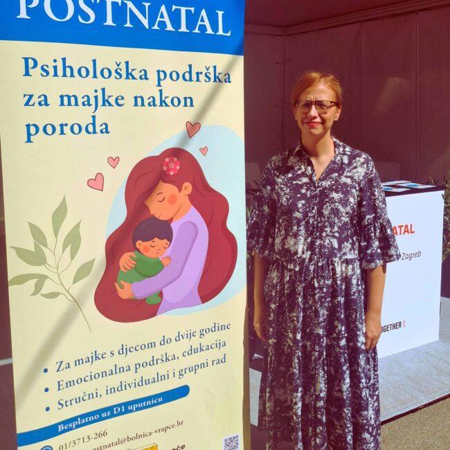 Kliniku su na ovom velikom javnozdravstvenom događaju predstavile dr. med. Ilaria Čulo Vozetić, specijalist psihijatrije, i Marijana Topolnjak, medicinska sestra, članice našeg tima za Postnatal. Kroz stručno izlaganje približile su ciljeve i sadržaj jednog od rijetkih strukturiranih programa podrške ženama u postporođajnom razdoblju.