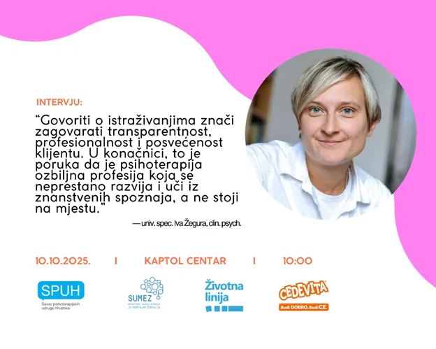 U razgovoru za Savez psihoterapijskih udruga Hrvatske (SPUH), naša kolegica, klinička psihologinja Iva Žegura, univ. spec. ističe koliko je važno da psihoterapijski rad bude utemeljen na istraživanjima. Takav pristup ne samo da povećava učinkovitost tretmana, već i doprinosi sigurnosti i povjerenju klijenata.